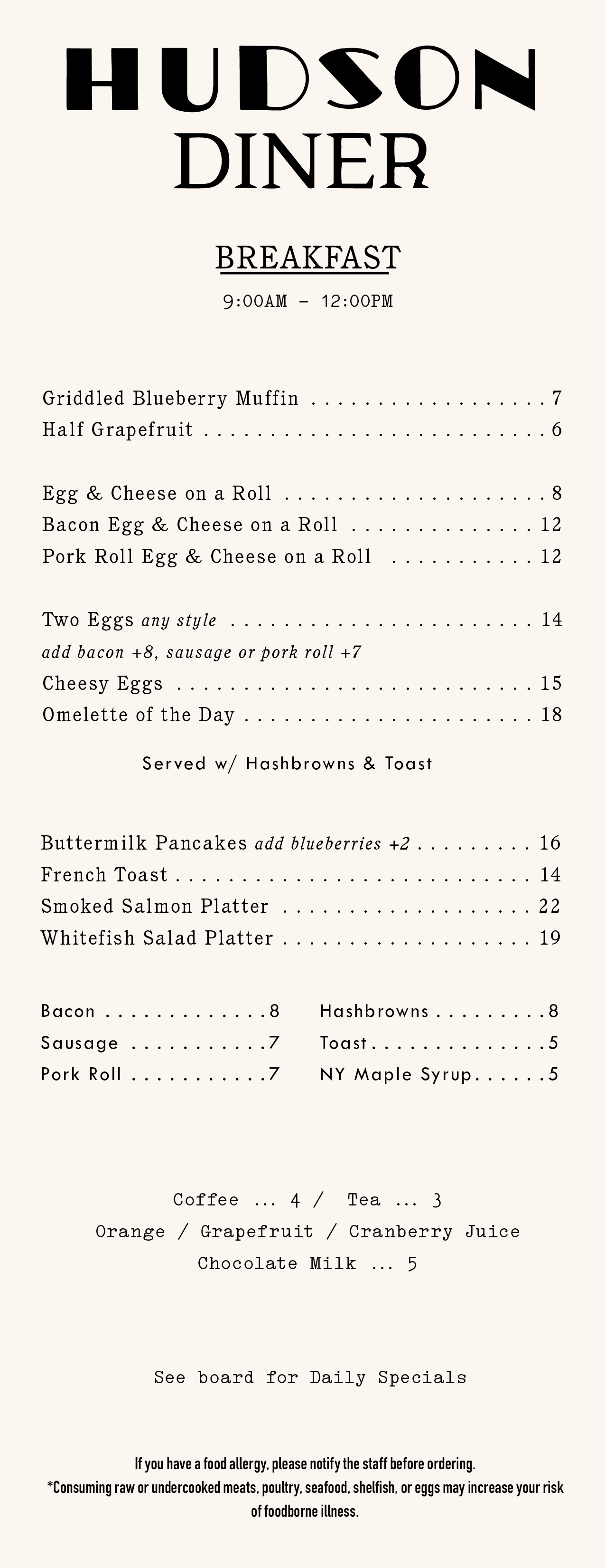Breakfast served Saturday & Sunday 9 AM — 12 PM